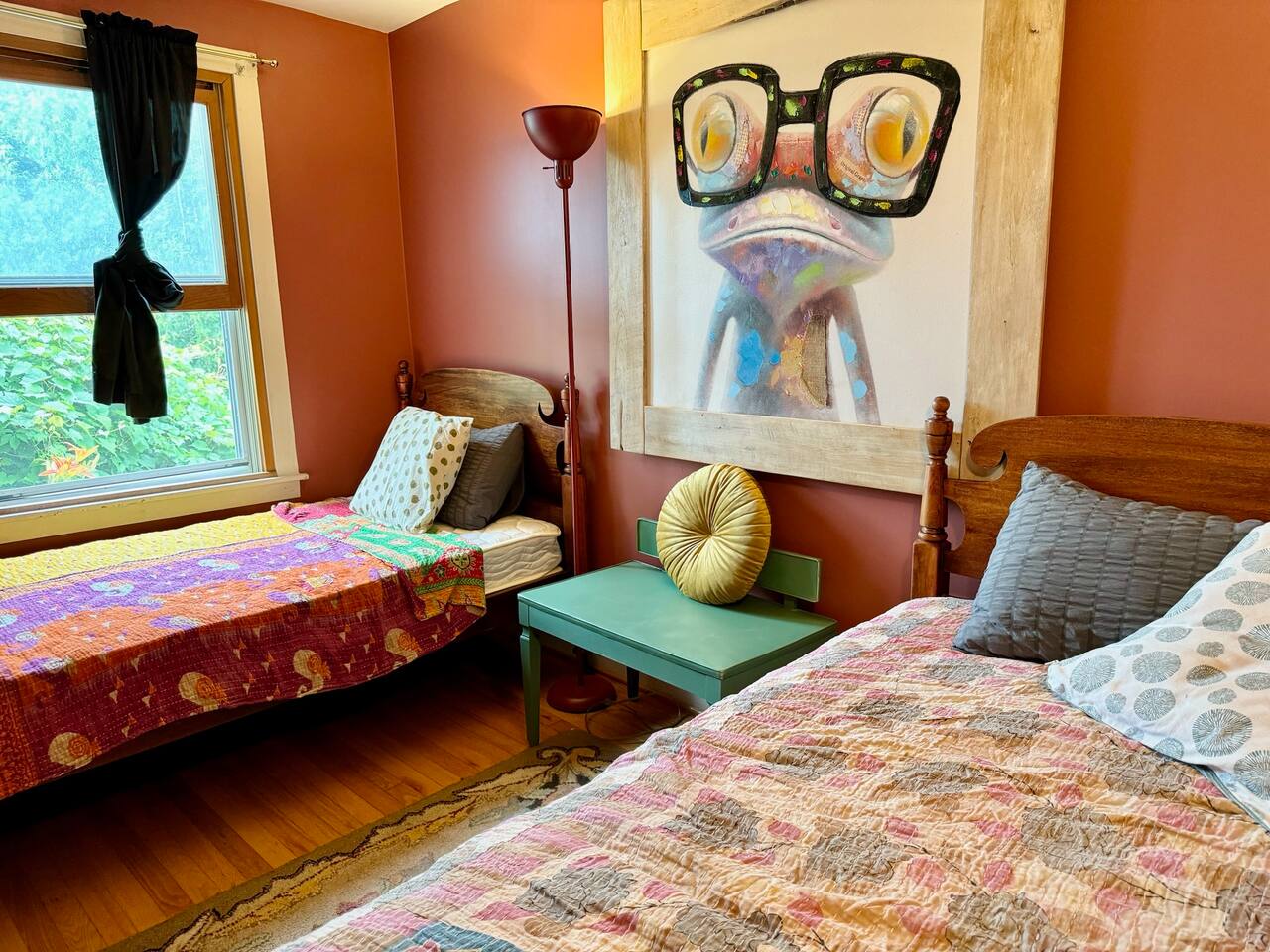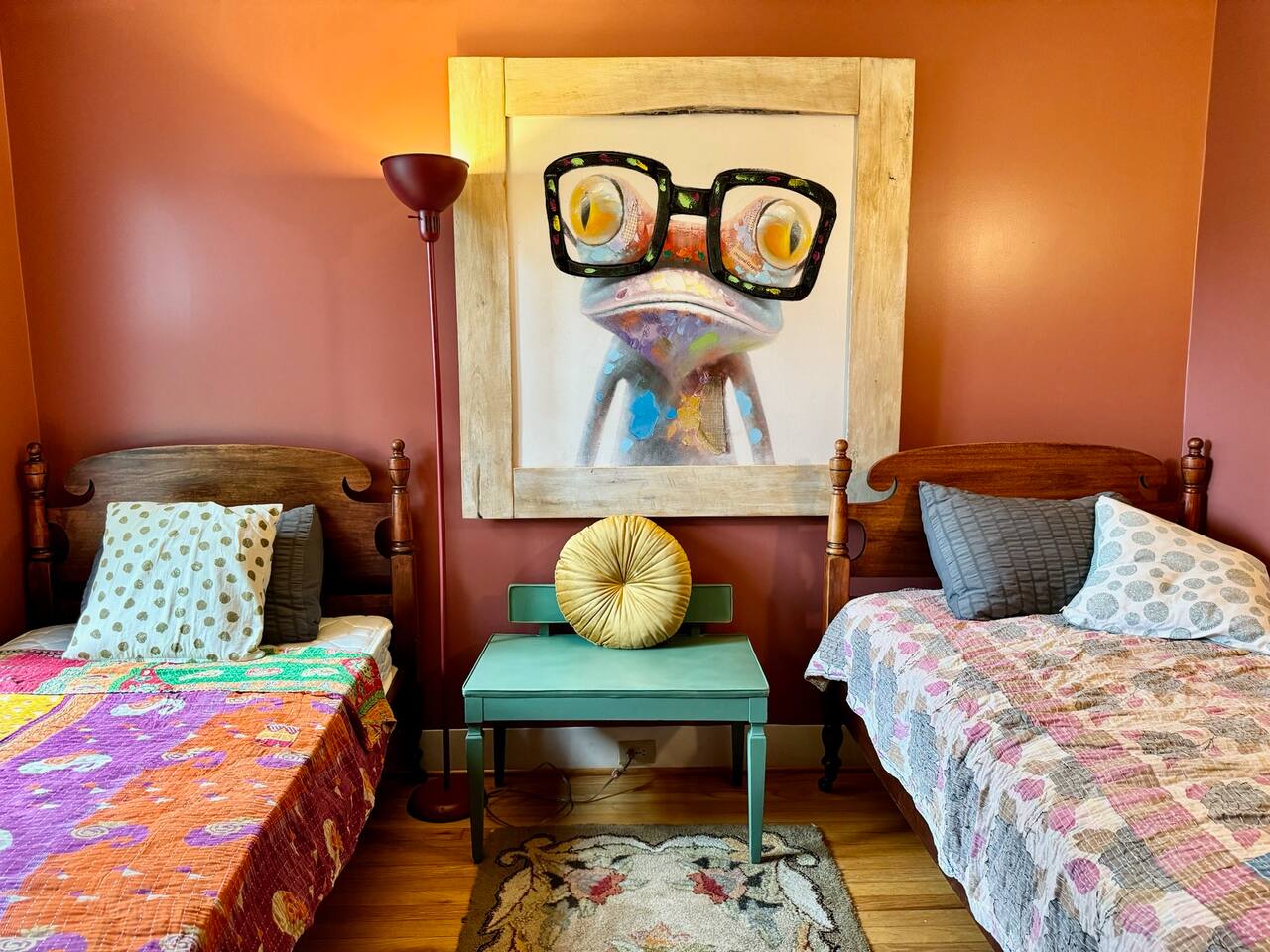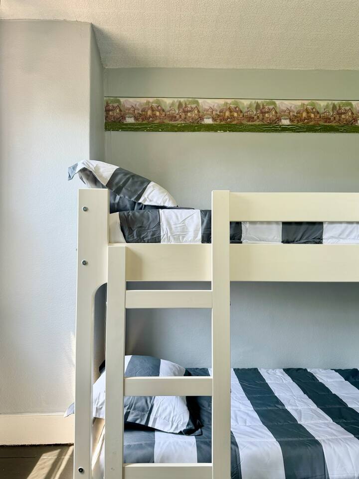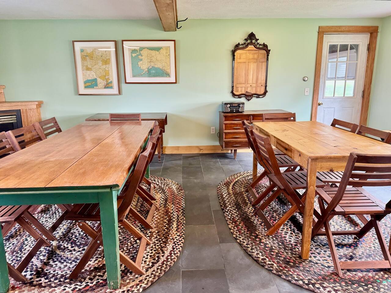 On the main floor you’ll find the eat-in kitchen, living room with couches and a big smart tv, one full spacious bathroom with tub, and two bedrooms. The (free) laundry facilities are off the bathroom. One of the bedrooms on the ground floor has a queen bed, and the other has 2 twins. Also on the ground floor we have a large dining room with seating for up to 22 guests. This is the perfect gathering spot, with great views of the property and neighboring farm. The main upstairs has a full bathroom and three bedrooms - one with a king bed, another with a king plus a twin, and the final bedroom has 2 sets of bunk beds (4 twins). The second upstairs area, above the kitchen, is a great hideaway for kids - it’s a cozy playroom with games and toys. Please note that we cannot host more than 10 overnight guests as per the town regulations.