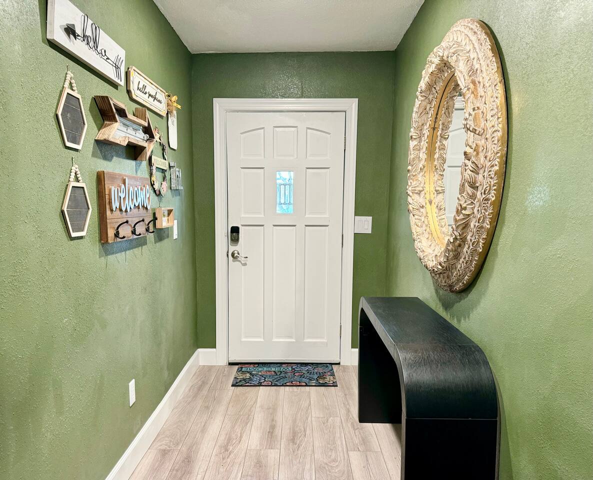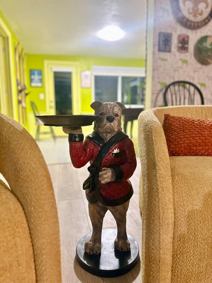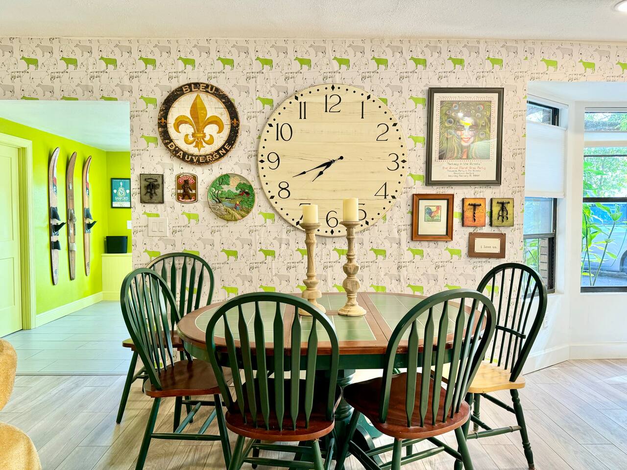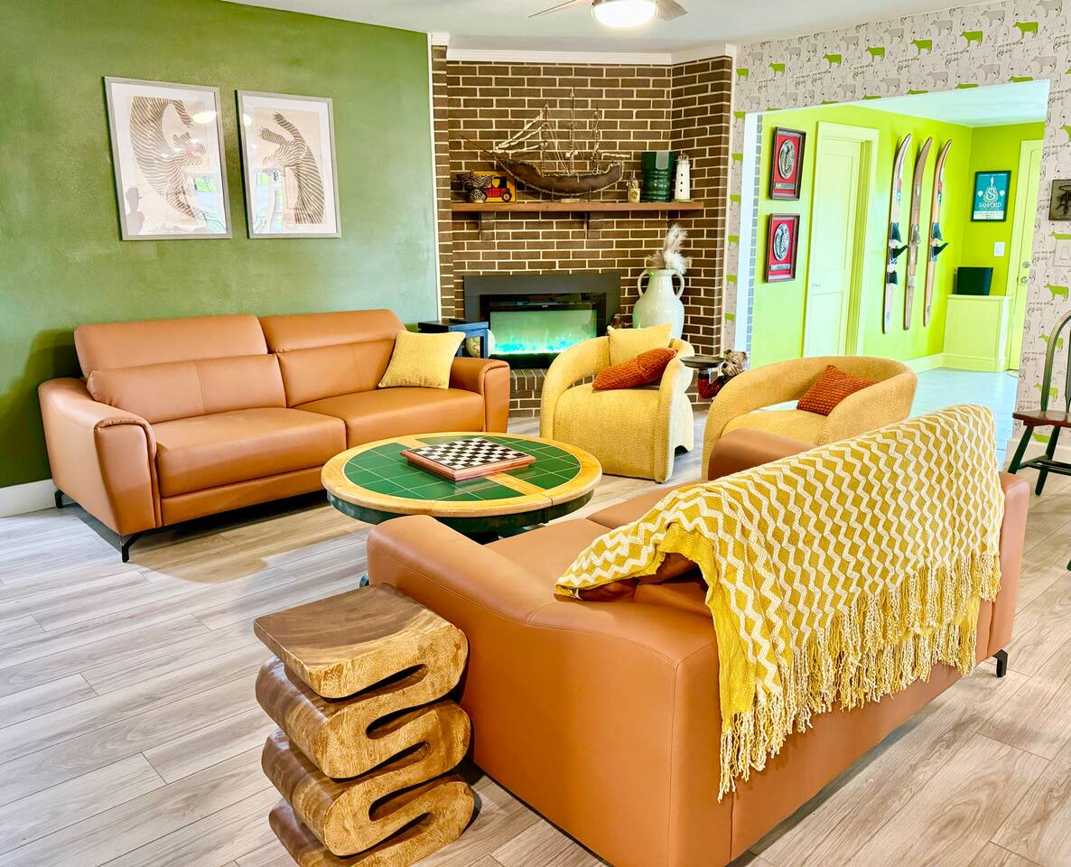 Welcome to our funky 4-bedroom, 3-bathroom retreat! Bursting with bold colors and quirky decor, every corner has a surprise to discover. The bathrooms and kitchen are brand-new, just remodeled this year. The house is on a quiet street, but it's just a short stroll to downtown Sanford, so you'll be close to unique shops, restaurants, breweries, and the beautiful waterfront. Perfect for groups seeking a fun, vibrant space to relax and explore all that Sanford has to offer!