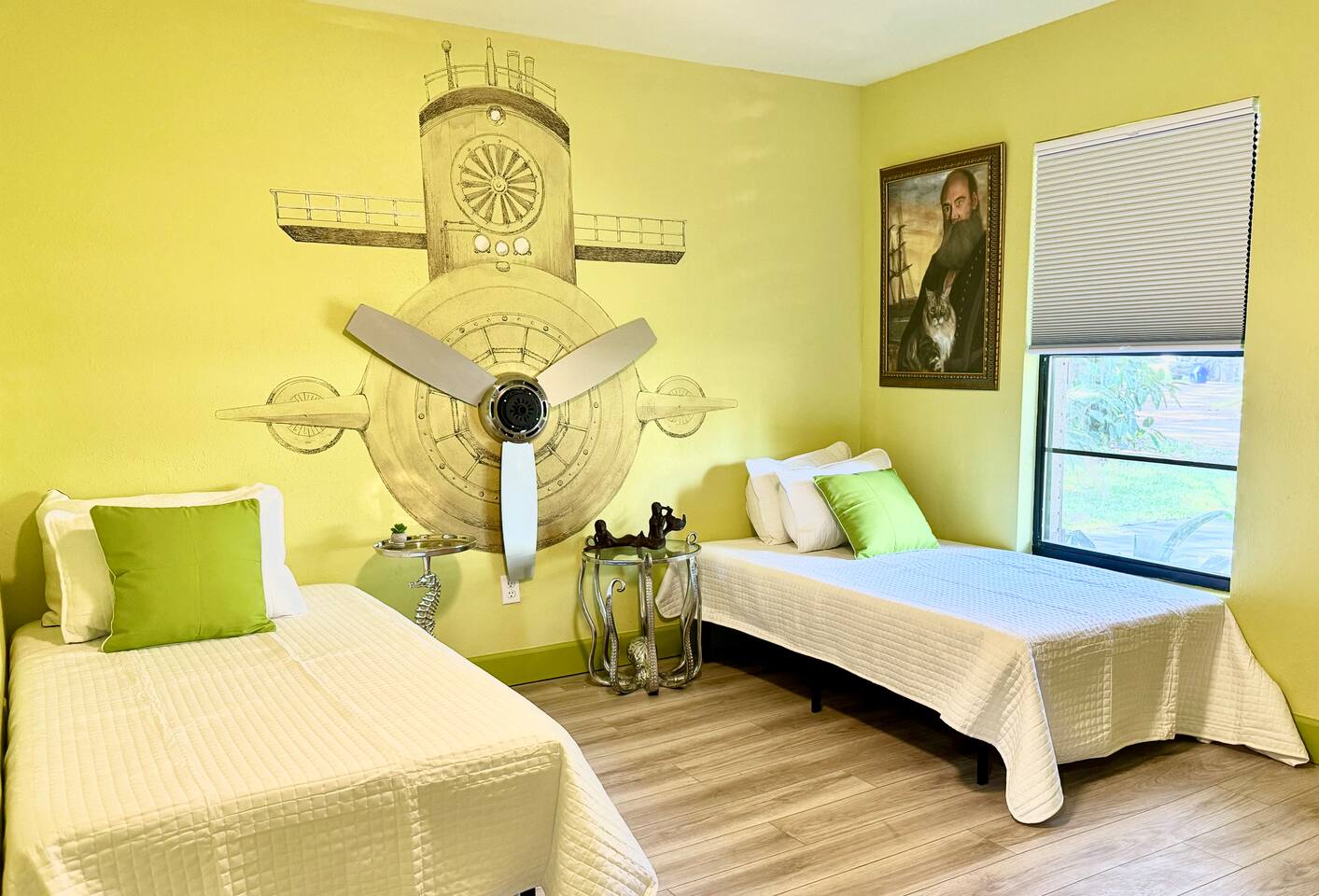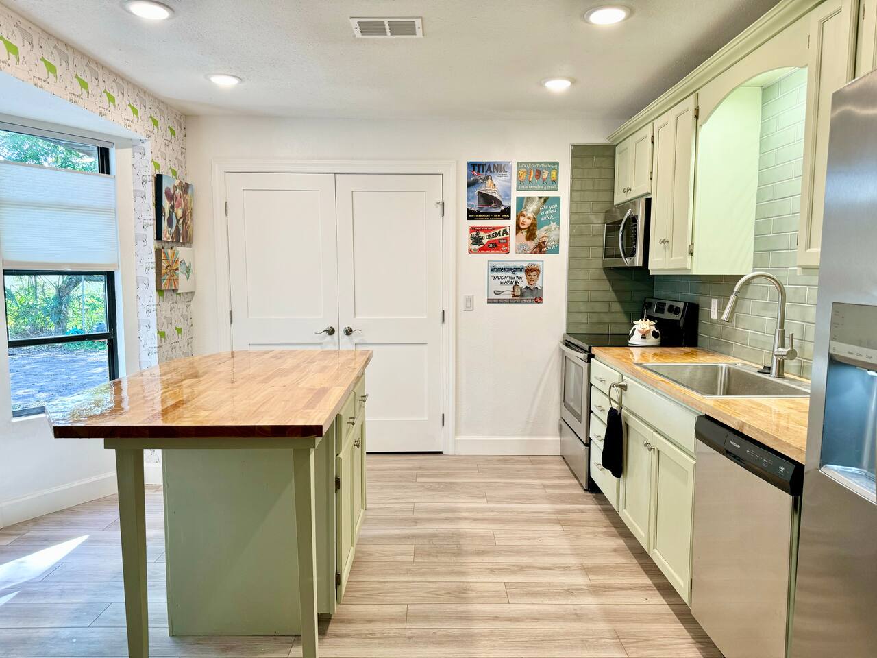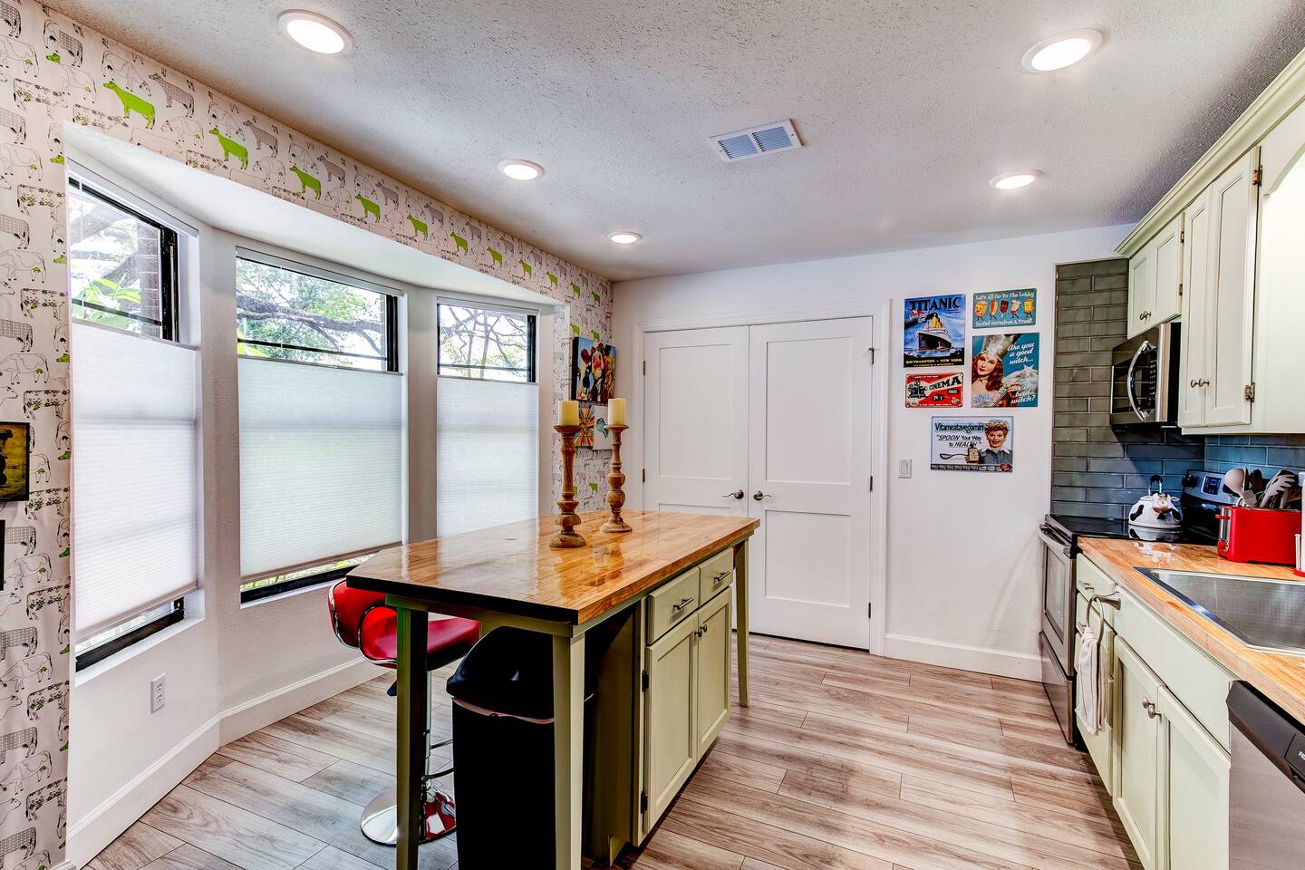 Welcome to our funky 4-bedroom, 3-bathroom retreat! Bursting with bold colors and quirky decor, every corner has a surprise to discover. The bathrooms and kitchen are brand-new, just remodeled this year. The house is on a quiet street, but it's just a short stroll to downtown Sanford, so you'll be close to unique shops, restaurants, breweries, and the beautiful waterfront. Perfect for groups seeking a fun, vibrant space to relax and explore all that Sanford has to offer!