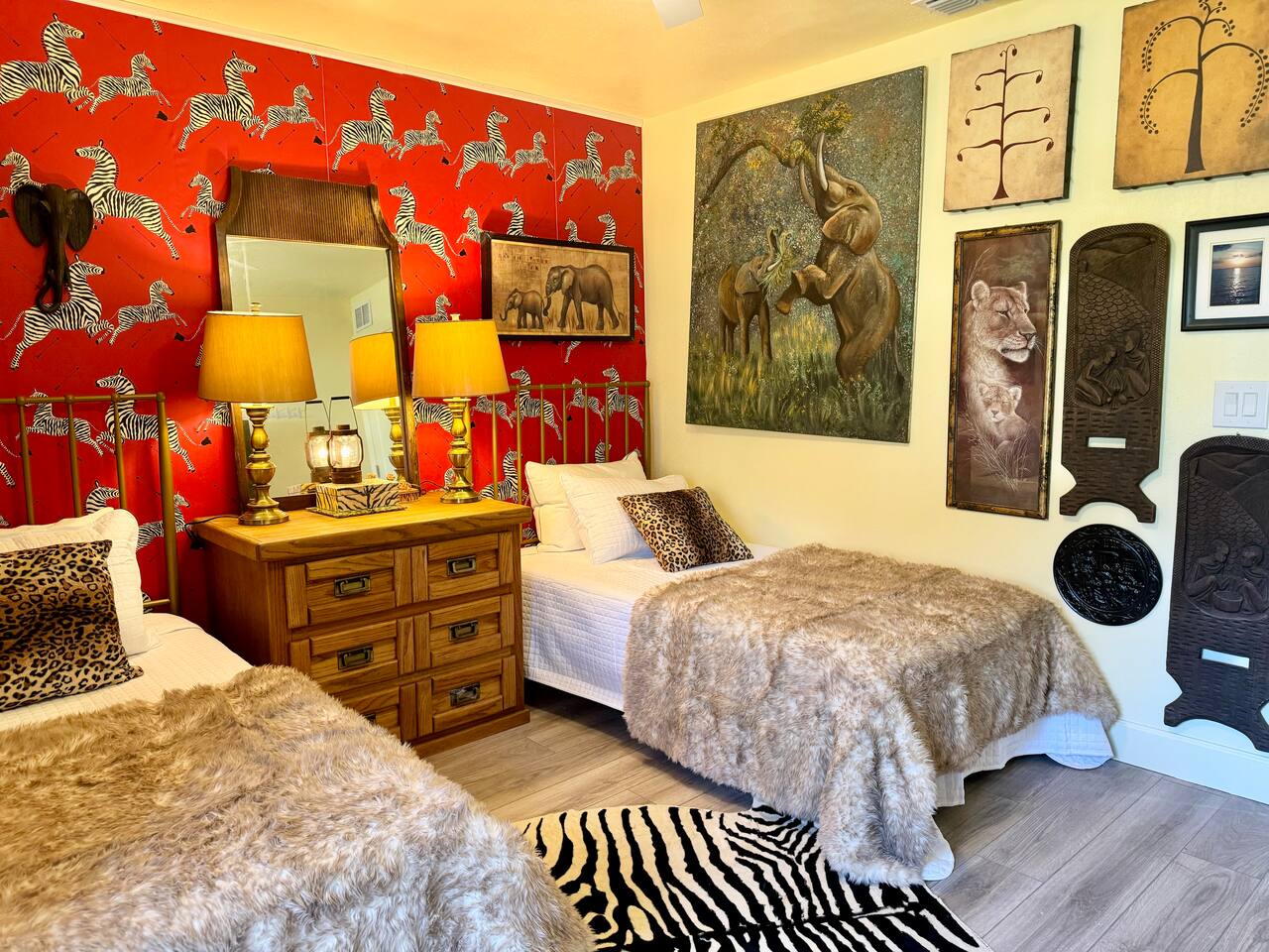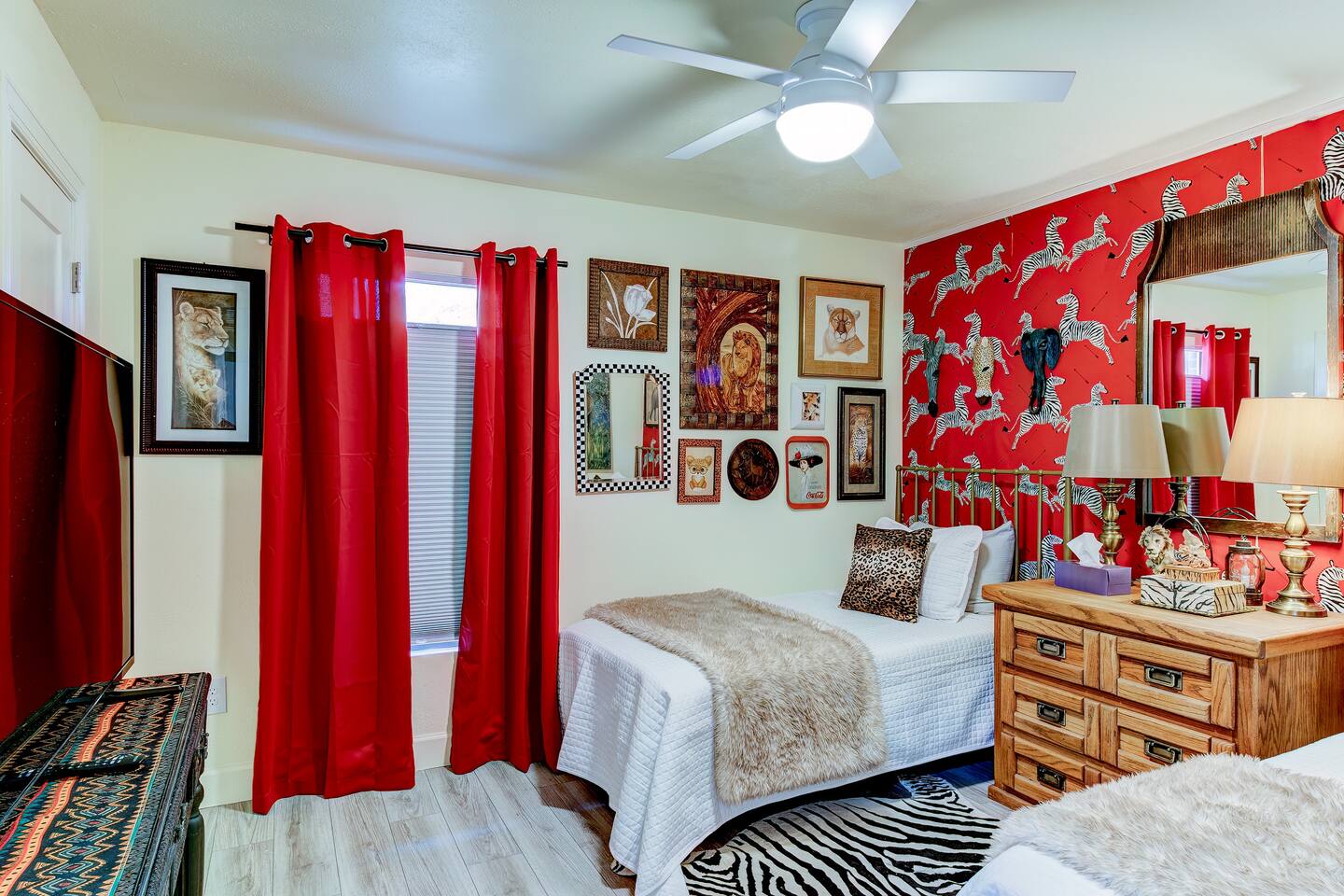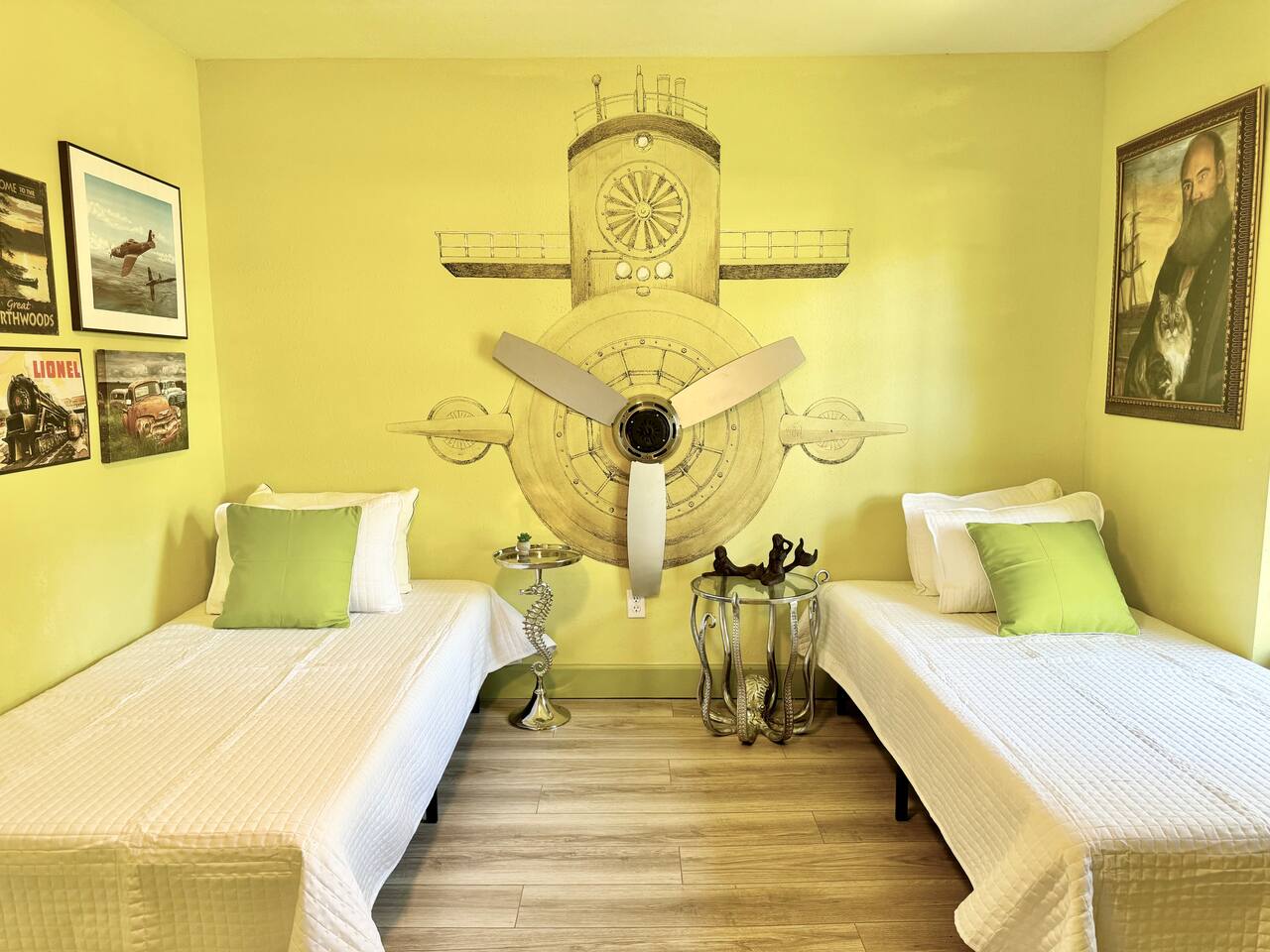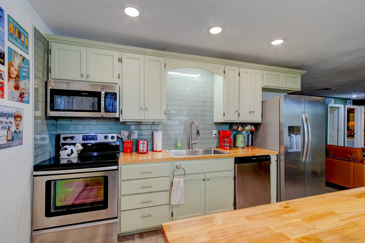 Welcome to our funky 4-bedroom, 3-bathroom retreat! Bursting with bold colors and quirky decor, every corner has a surprise to discover. The bathrooms and kitchen are brand-new, just remodeled this year. The house is on a quiet street, but it's just a short stroll to downtown Sanford, so you'll be close to unique shops, restaurants, breweries, and the beautiful waterfront. Perfect for groups seeking a fun, vibrant space to relax and explore all that Sanford has to offer!