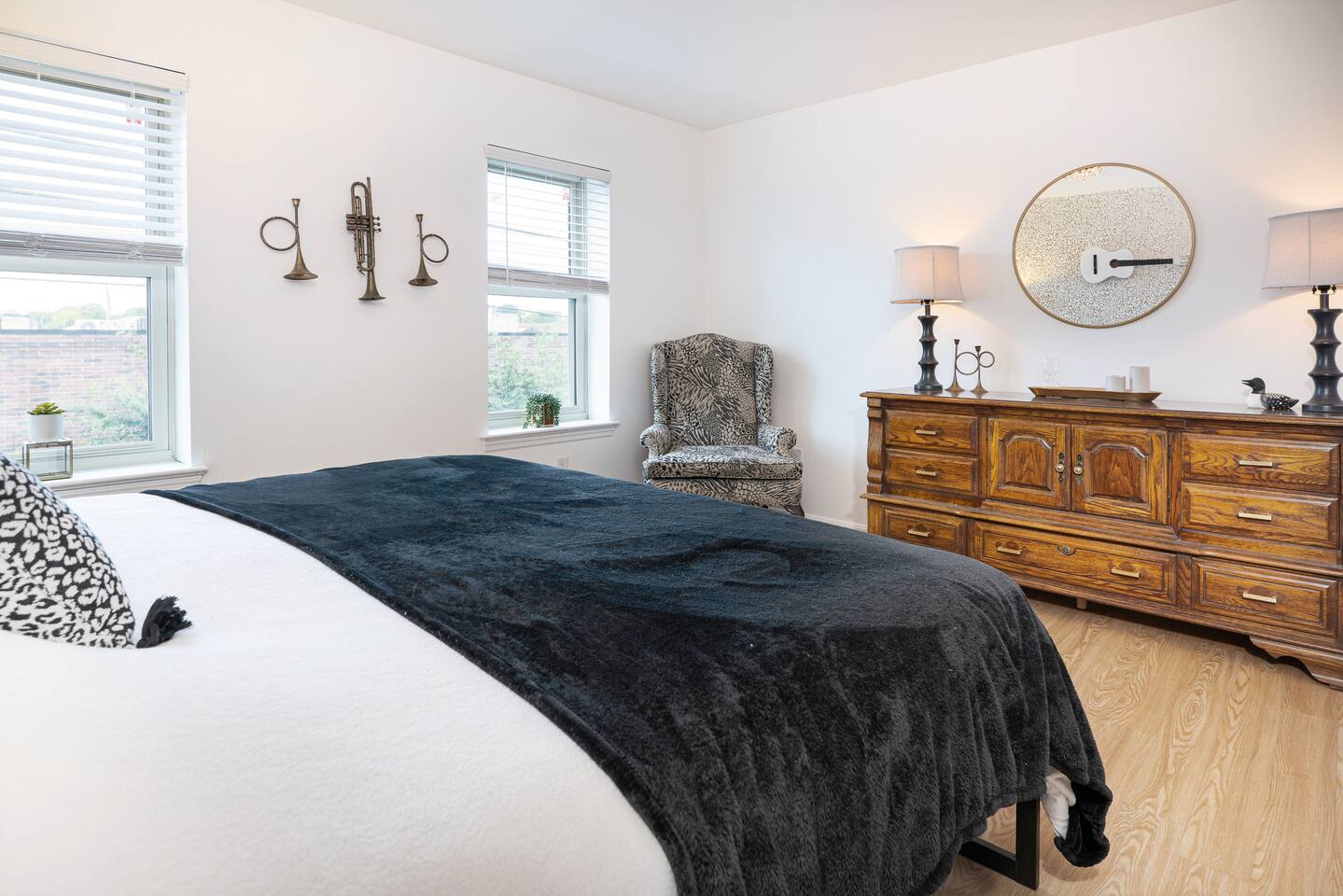 Get ready to rock at Larry's Lancaster Landing, decorated to celebrate Lancaster's music culture. Conveniently located on a quiet street, you'll be a 15 minute stroll (or 5 minute drive) to the center of town. Just a few minutes walk to Lancaster Brewing Co & other restaurants, grocery stores, etc. It's the perfect place to unwind: put on one of our hundreds of records, and sip some wine in the jetted tub or enjoy the steam shower. Fido is sure to appreciate the fully-fenced backyard.