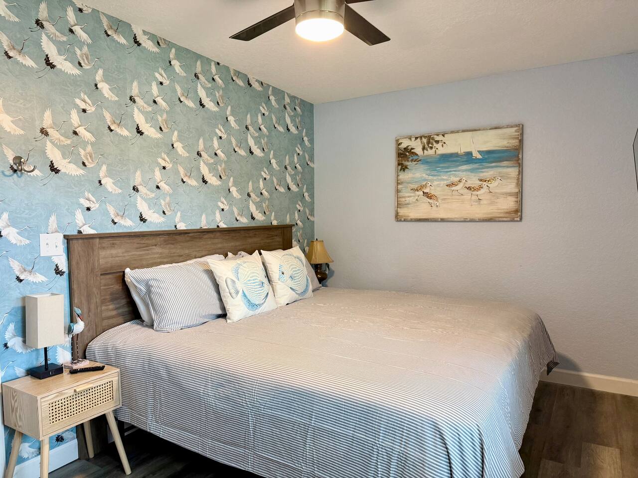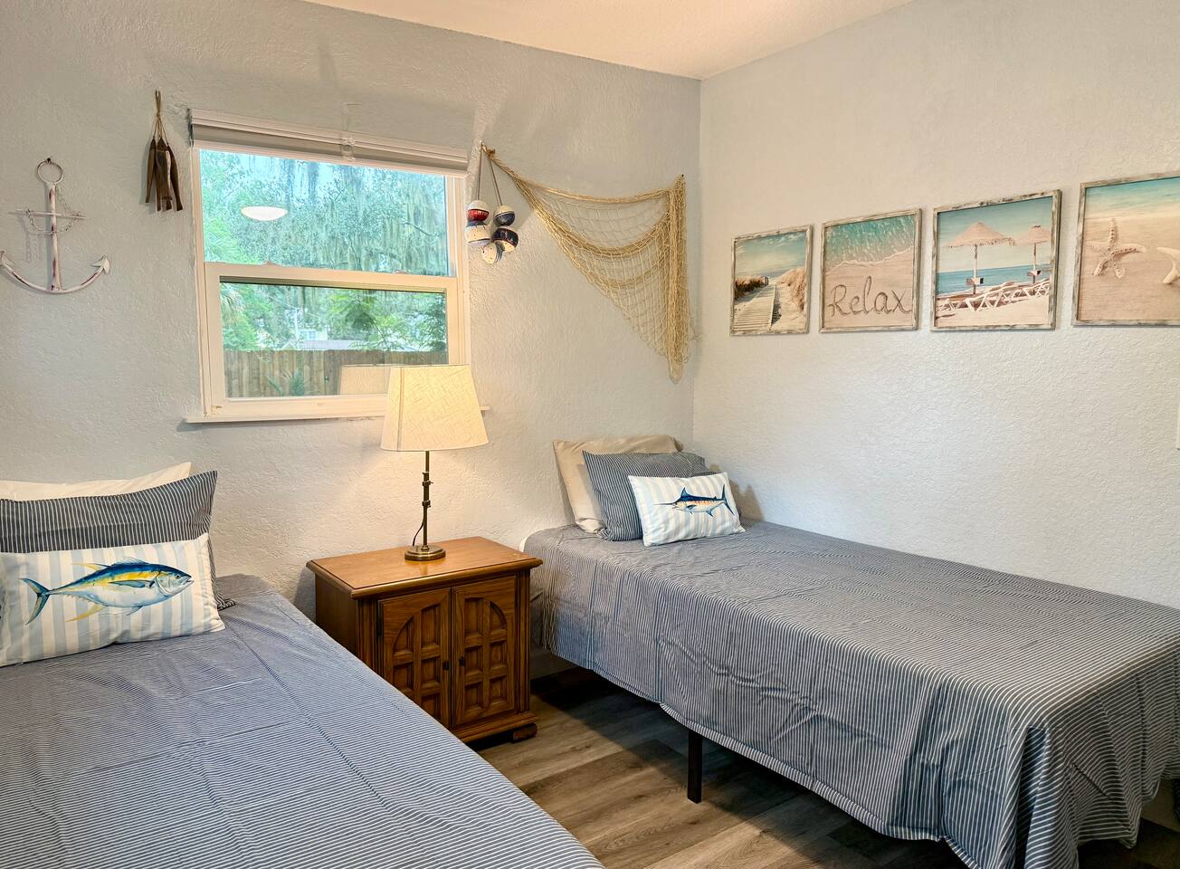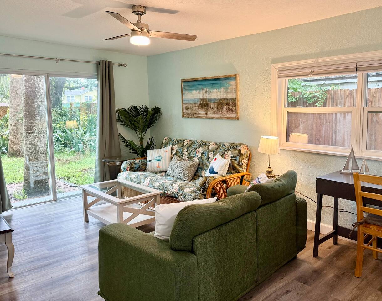 This charming nautical-themed 3 bedroom, 2 bathroom home is located in a quiet Sanford neighborhood, just 3 blocks from Lake Monroe, 2 blocks from Ft. Mellon Park, and 5 blocks from downtown Sanford’s dining and shops. The home is spotless and inviting, with TVs in every bedroom and a futon in the living room for extra sleeping space. Guests will love the expansive fully fenced backyard, ideal for families, pets, or relaxing after a day by the lake.