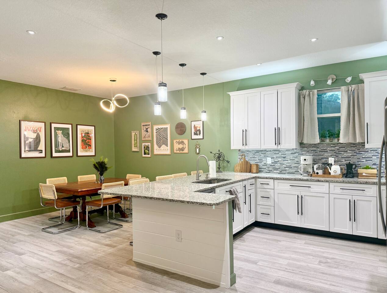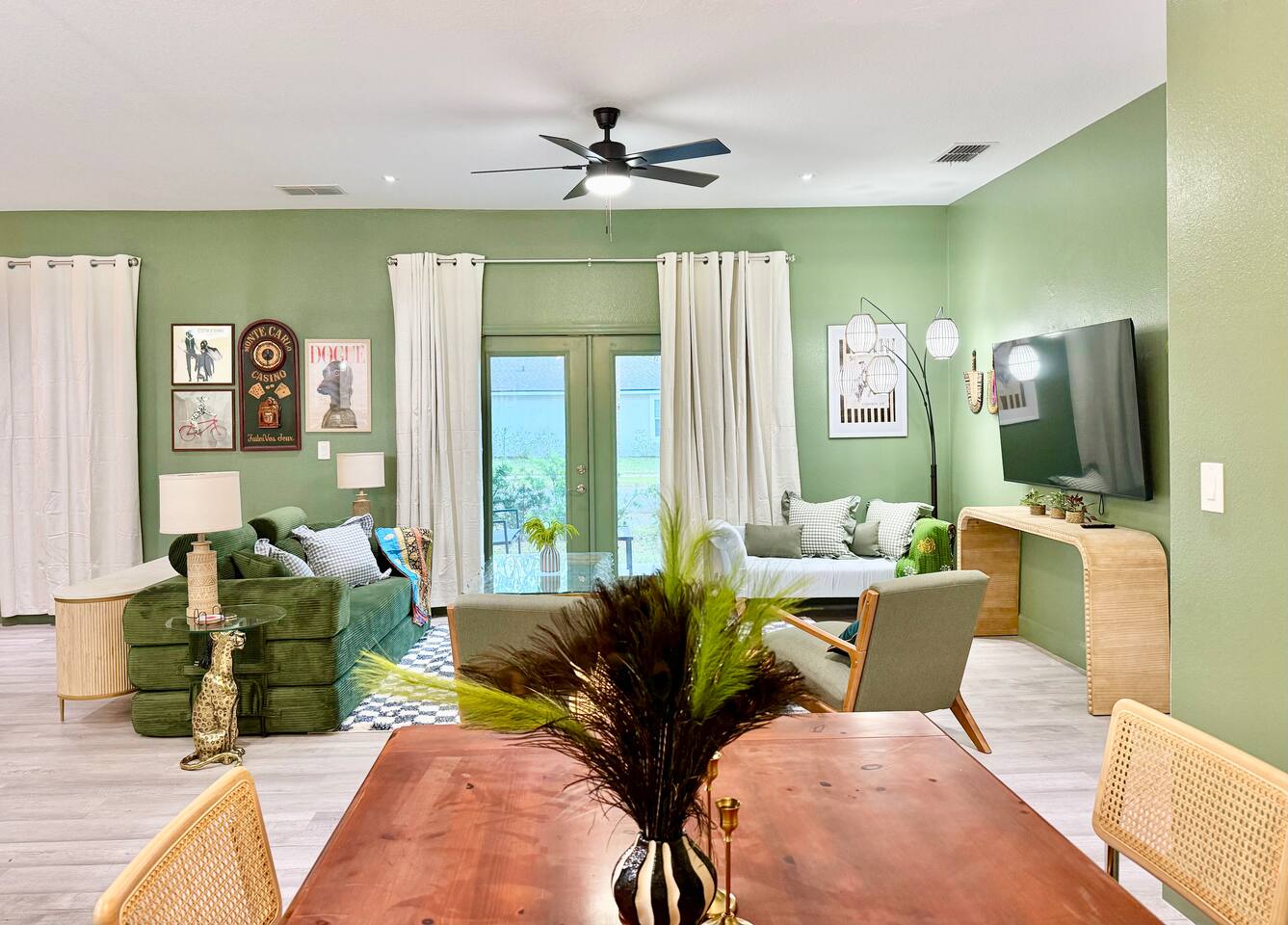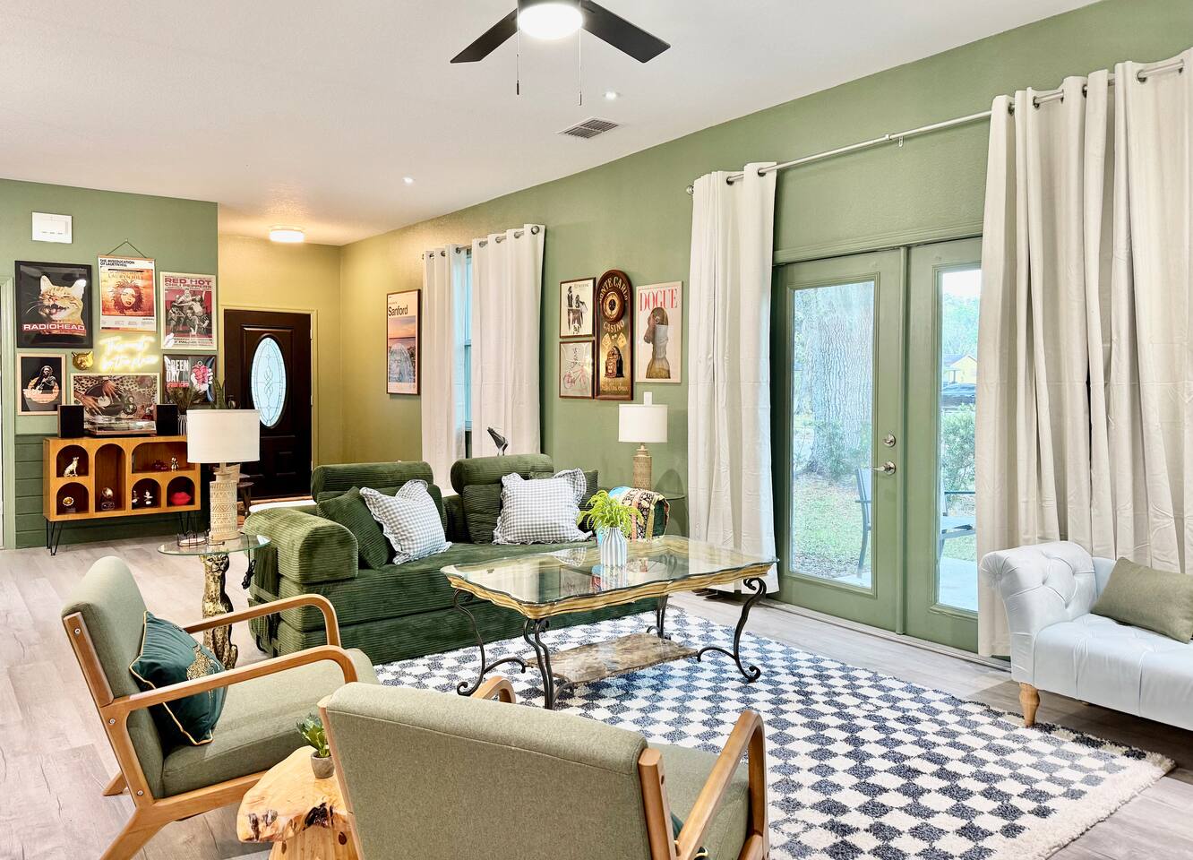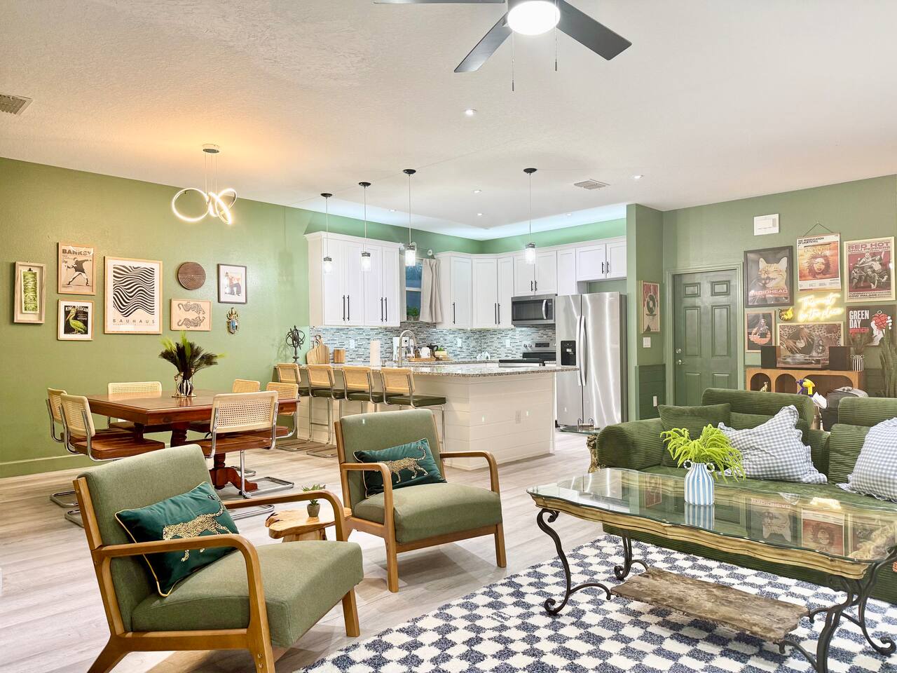 This modern home is tucked into a quiet neighborhood close to historic downtown Sanford and Lake Monroe. It's walkable to the downtown breweries, restaurants, live music, and the RiverWalk. Inside, the home is designed to feel easy and elevated. You’ve got two super comfy king bedrooms that actually feel like an upgrade, plus a third bedroom with two Twin XL beds that work perfectly for friends or kids. With two full bathrooms (including one with a tub), getting ready, or winding down, is never a hassle. The living space is bright, open, and made for hanging out, whether you're streaming a movie, playing games, or putting on a record. The curated vinyl collection adds a little extra character for slower mornings or relaxed nights in. Every bedroom and the living room has its own TV, so everyone can unwind their own way. Need to stay connected? You’ll have high-speed Starlink internet, so working remotely or streaming is smooth and reliable - no slowdowns, no stress. The kitchen is fully set up with everything you need to cook and gather, anchored by a large dining table that’s perfect for meals, game nights, or spreading out with a laptop. And mornings here hit different thanks to a fully stocked coffee setup with drip coffee, a French press, milk frother, and Starbucks coffee. When it’s time to have some fun, head out to the garage where you’ll find a ping pong table ready for late-night tournaments, or take it outside and enjoy the patio seating area, ideal for coffee in the morning or drinks in the evening. If you’re traveling with kids, there’s a large public playground just a one-minute walk away, making it incredibly easy to get outside without planning a whole outing. Back inside, you’ll also find a collection of board games for relaxed nights in. The location really ties it all together. You’re close enough to walk downtown, but far enough to enjoy the quiet when you need it. Spend your days exploring downtown Sanford, catching sunsets at Lake Monroe, or taking short drives to Orlando, beaches, and natural springs, then come home to a place that actually feels like your own. This is the kind of stay that works whether you're here for a weekend getaway, a longer visit, or a mix of work and downtime. Comfortable, walkable, and just the right amount of fun.
