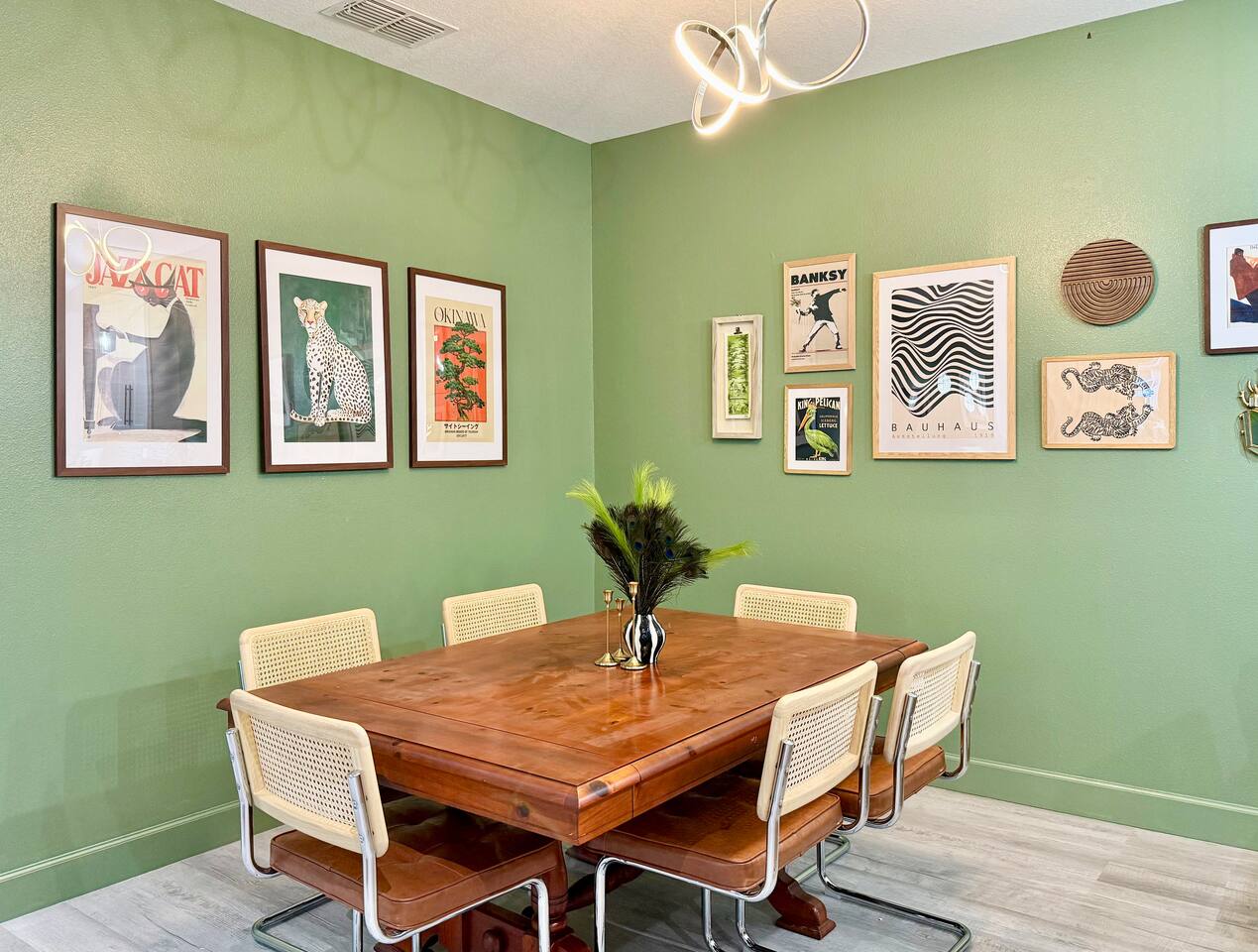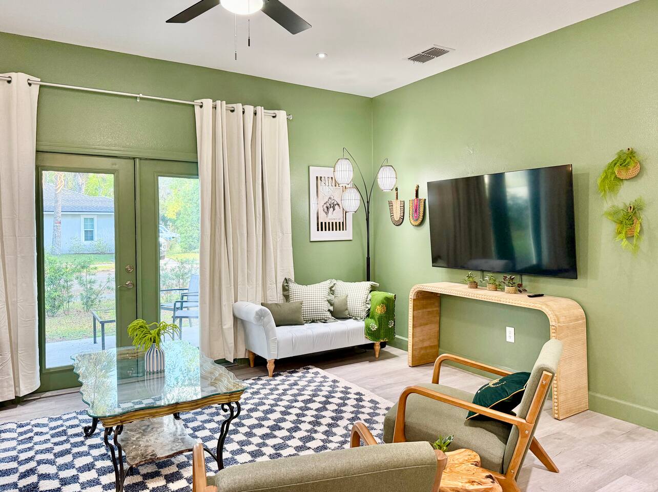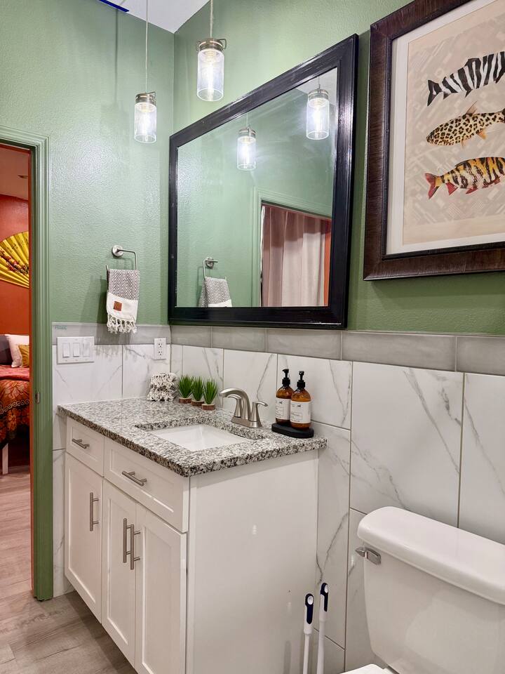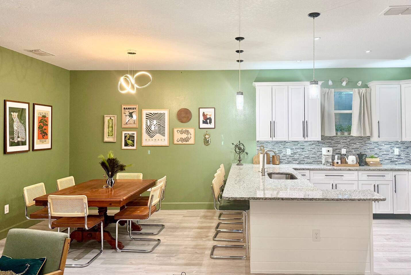 This modern home is tucked into a quiet neighborhood close to historic downtown Sanford and Lake Monroe. It's walkable to the downtown breweries, restaurants, live music, and the RiverWalk. Inside, the home is designed to feel easy and elevated. You’ve got two super comfy king bedrooms that actually feel like an upgrade, plus a third bedroom with two Twin XL beds that work perfectly for friends or kids. With two full bathrooms (including one with a tub), getting ready, or winding down, is never a hassle. The living space is bright, open, and made for hanging out, whether you're streaming a movie, playing games, or putting on a record. The curated vinyl collection adds a little extra character for slower mornings or relaxed nights in. Every bedroom and the living room has its own TV, so everyone can unwind their own way. Need to stay connected? You’ll have high-speed Starlink internet, so working remotely or streaming is smooth and reliable - no slowdowns, no stress. The kitchen is fully set up with everything you need to cook and gather, anchored by a large dining table that’s perfect for meals, game nights, or spreading out with a laptop. And mornings here hit different thanks to a fully stocked coffee setup with drip coffee, a French press, milk frother, and Starbucks coffee. When it’s time to have some fun, head out to the garage where you’ll find a ping pong table ready for late-night tournaments, or take it outside and enjoy the patio seating area, ideal for coffee in the morning or drinks in the evening. If you’re traveling with kids, there’s a large public playground just a one-minute walk away, making it incredibly easy to get outside without planning a whole outing. Back inside, you’ll also find a collection of board games for relaxed nights in. The location really ties it all together. You’re close enough to walk downtown, but far enough to enjoy the quiet when you need it. Spend your days exploring downtown Sanford, catching sunsets at Lake Monroe, or taking short drives to Orlando, beaches, and natural springs, then come home to a place that actually feels like your own. This is the kind of stay that works whether you're here for a weekend getaway, a longer visit, or a mix of work and downtime. Comfortable, walkable, and just the right amount of fun.