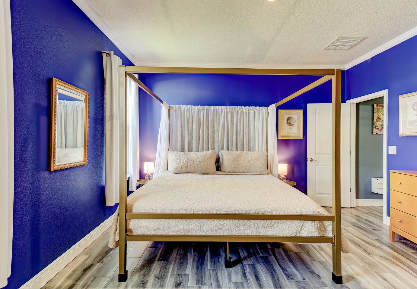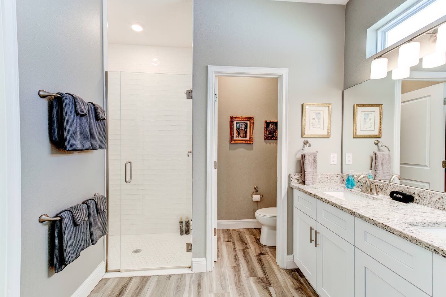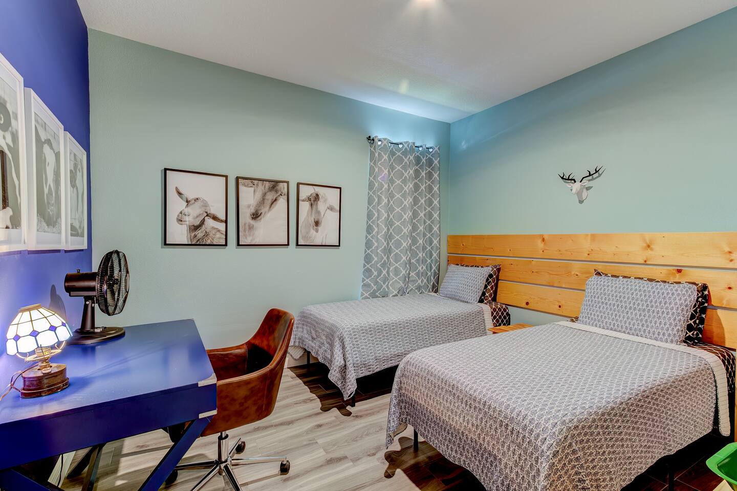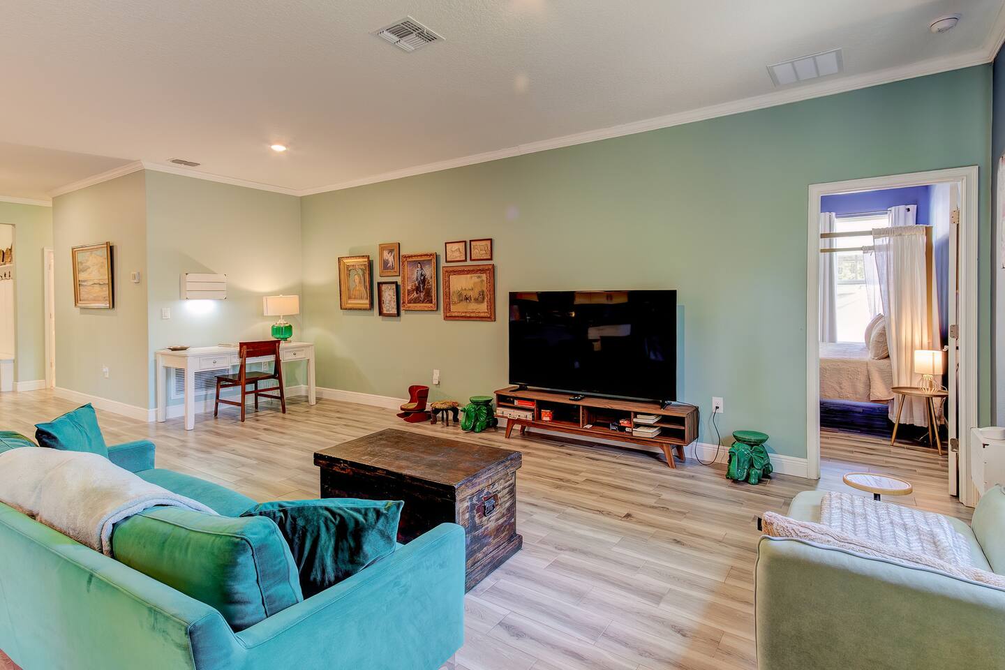 This house is new (construction was finished in 2021). It is bright and sunny, and has an open floor-plan and 4 bedrooms with 3 full bathrooms. The main bedroom suite has a king bed, large bathroom, and walk-in closet. With versatile bedrooms, everyone is sure to be comfy: two of the bedrooms can set up as either a king or 2 twin XL beds. The 4th bedroom is set up as an office, but the couch folds out to a twin-size bed, and a mattress topper is provided so it can be comfy for our long-term guests. A spare twin folding cot bed is also provided.