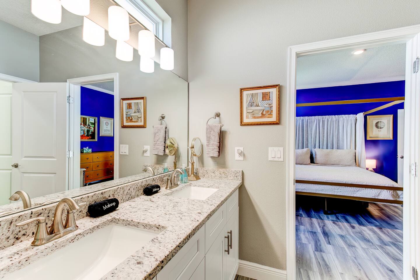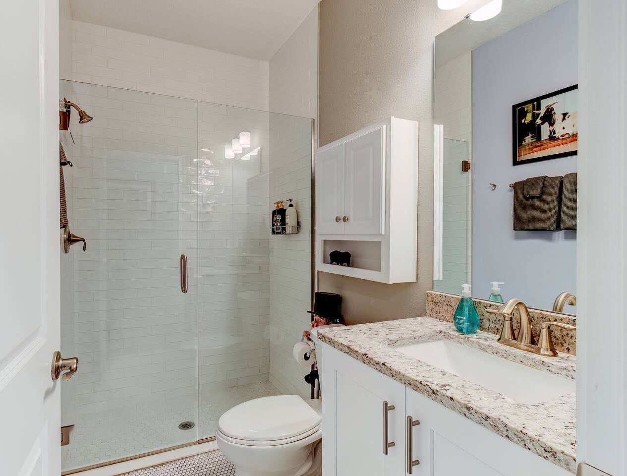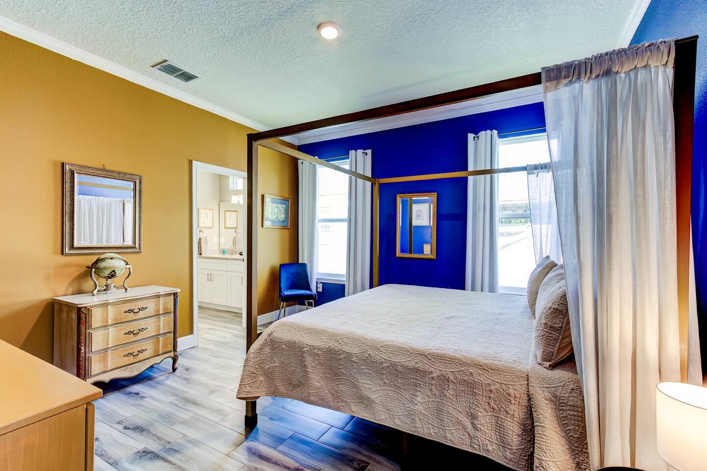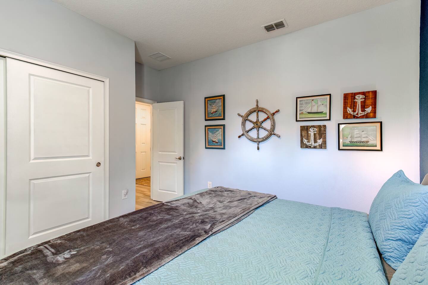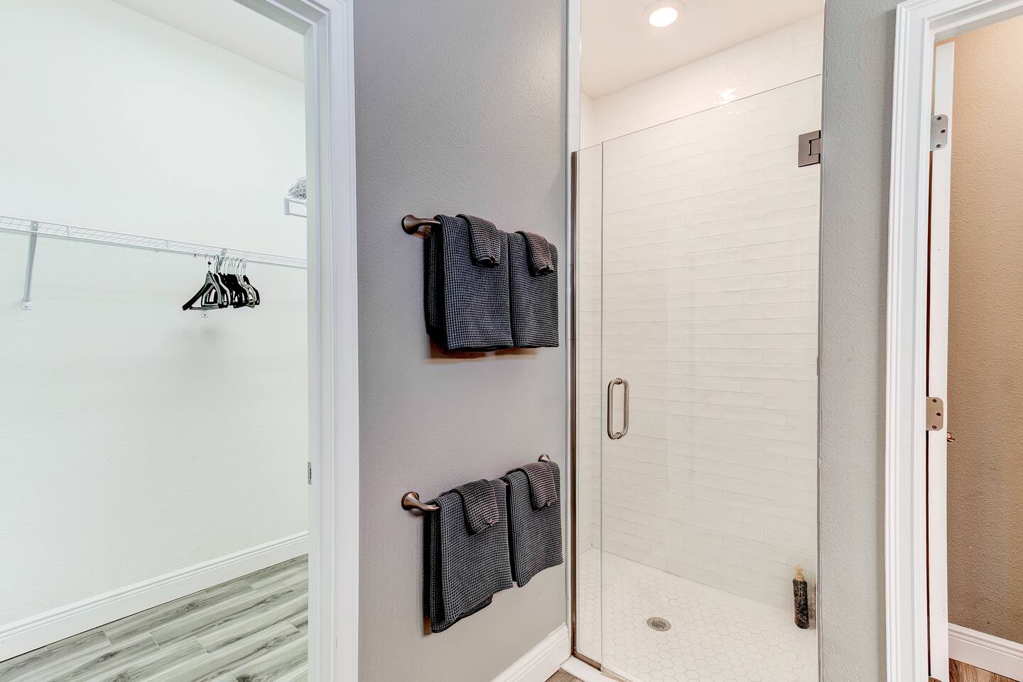 This house is new (construction was finished in 2021). It is bright and sunny, and has an open floor-plan and 4 bedrooms with 3 full bathrooms. The main bedroom suite has a king bed, large bathroom, and walk-in closet. With versatile bedrooms, everyone is sure to be comfy: two of the bedrooms can set up as either a king or 2 twin XL beds. The 4th bedroom is set up as an office, but the couch folds out to a twin-size bed, and a mattress topper is provided so it can be comfy for our long-term guests. A spare twin folding cot bed is also provided.