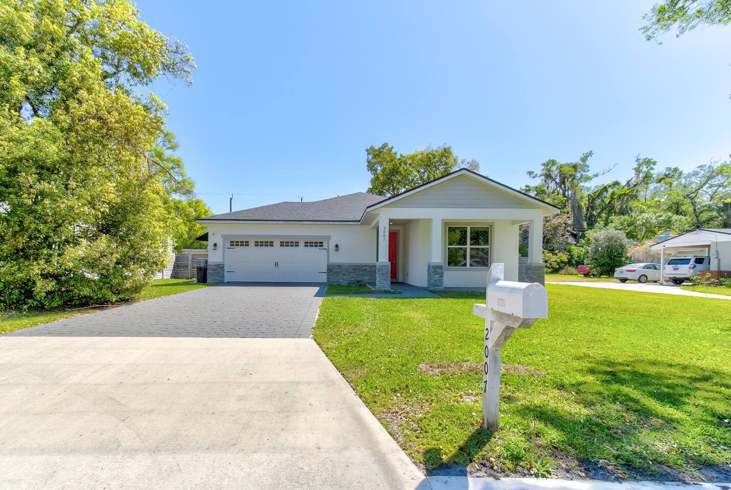 Plenty of parking at the house for multiple cars. You'll have full use of the 2 car garage. Sanford is very drivable and walkable.