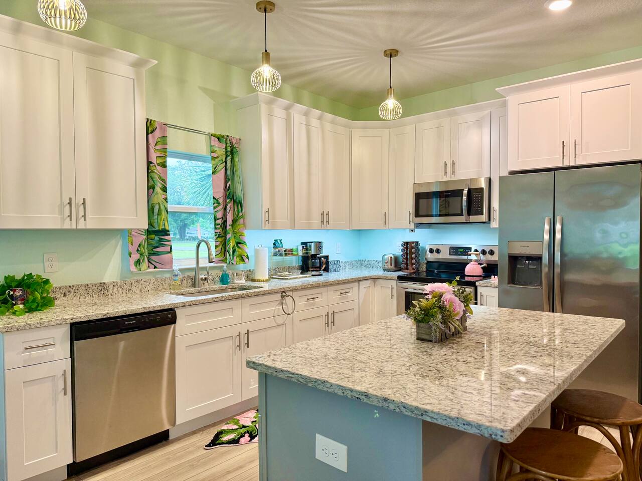 This stylish single-story home offers comfort, accessibility, and space to relax. The open layout connects the kitchen, dining, and living areas. Cook with ease in the granite kitchen with stainless appliances and island seating, and dine at a table for six. The primary suite includes a private bath (shower only). The other two bedrooms share a full bath with tub. Outside, enjoy a large yard (not fenced) and charcoal grill. One-car garage access is included for your convenience. We have a large yard, but it is not fully fenced in. If you're bringing a trailer or RV, there is tons of room to park here.